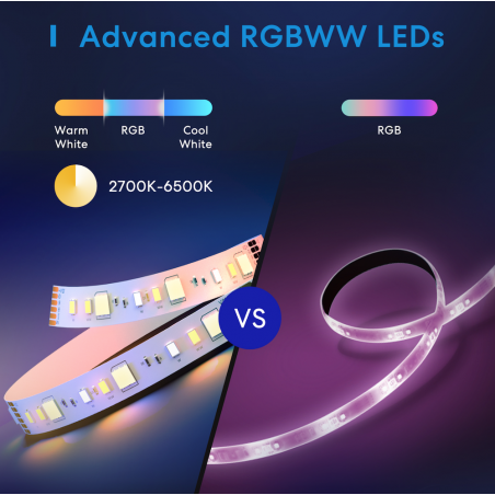 Bande LED WiFi RGB 5m Meross, compatible HomeKit, Alexa, Google, contrôle vocal, couleurs personnalisables, sans hub, pour une ambiance lumineuse sur-mesure.